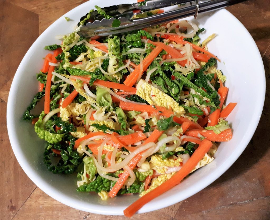 The last dressing/Salad I’d like to share is a variation of coleslaw. This Asian style dressing can go on normal coleslaw, or even more interesting a mixed apple salad, both of which add an interesting tang to a Bar-b-que, orserved with chicken or seafood…