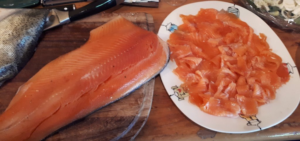 The real joy of this dish though, is that it takes 10 minsof prep at least 2 days before its needed, and that’s it. On the Day, you unwrap it, wipe it down, or rinse it, and it’s good to go. As with all these things, the longer its curing the better it tastes, and the longer it will last. I normally cure it for at least 3 days.