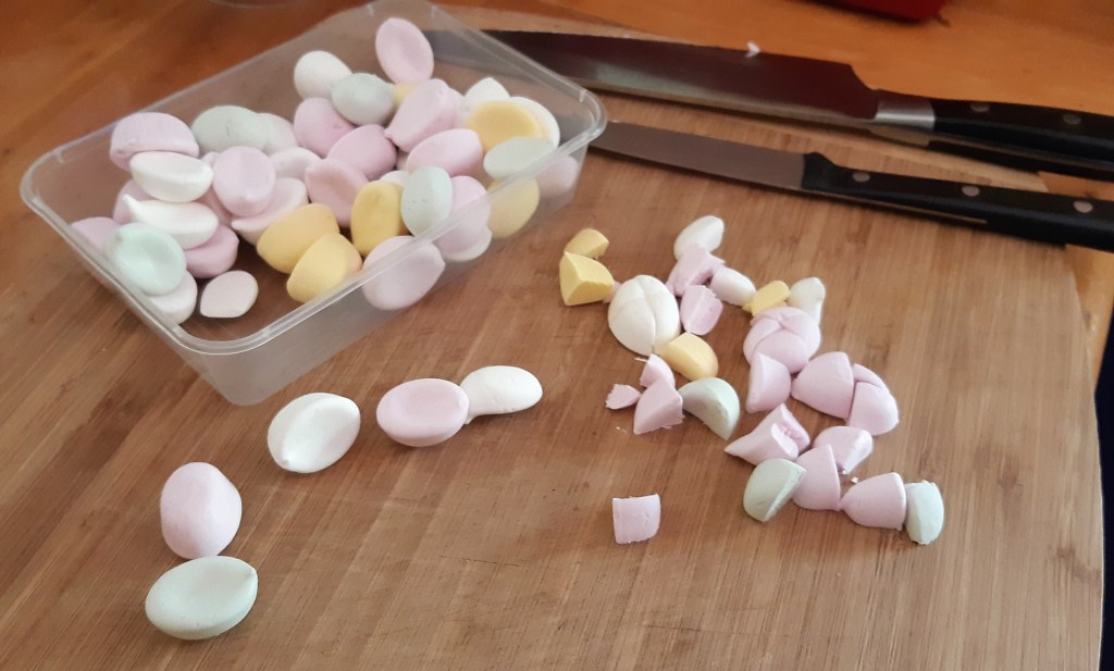 170 soft fruit lollies (or “eskimo” or “Spaceman” lollies) chopped