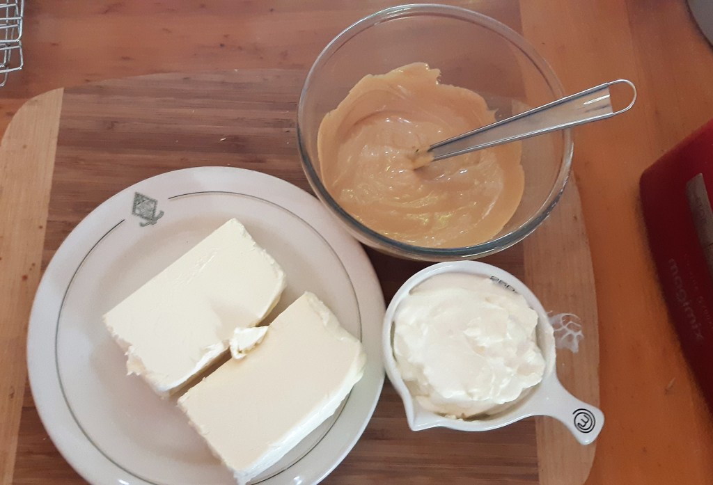 The normal cheesecake base is replaced by Lollycake. And the chocolate cheesecake was made using some caramel chocolate I had secreted away.This recipe uses sour cream in the mix, which balances the sweetness of the chocolate, and gives a really smooth texture to the cheesecake. This is one of the easiest no bake cheesecakes I know. The chocolate “sets” the mix, so there’s no need for gelatine or other setting agents.The Cream cheese must be at room temperature, or you might get lumps of unbeaten cream cheese in your cake. And it must be the full fat cream cheese. The light or spreadable ones just won’t set.