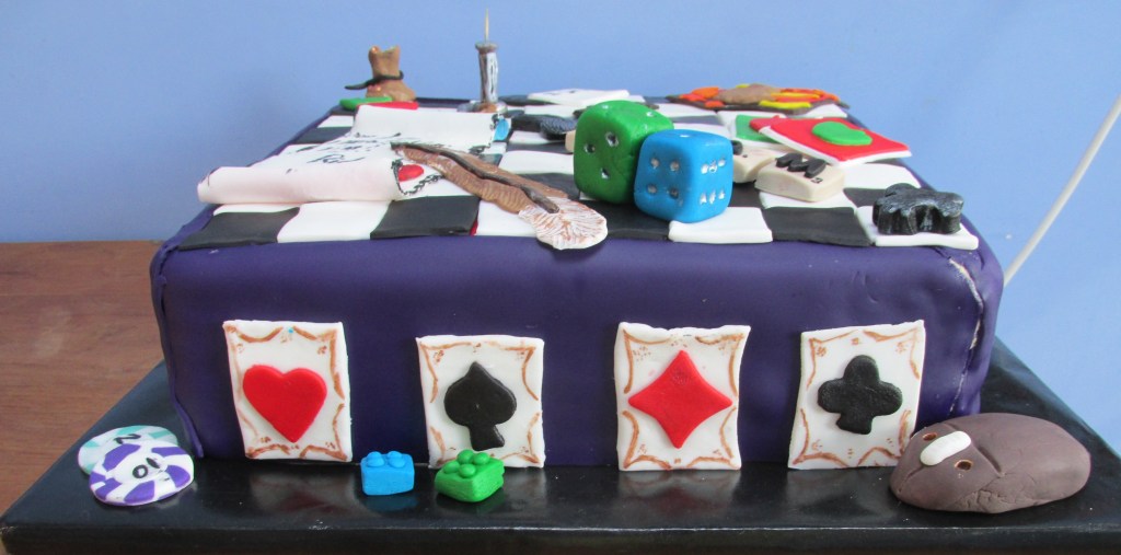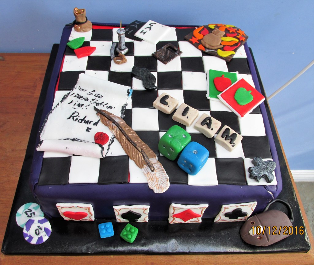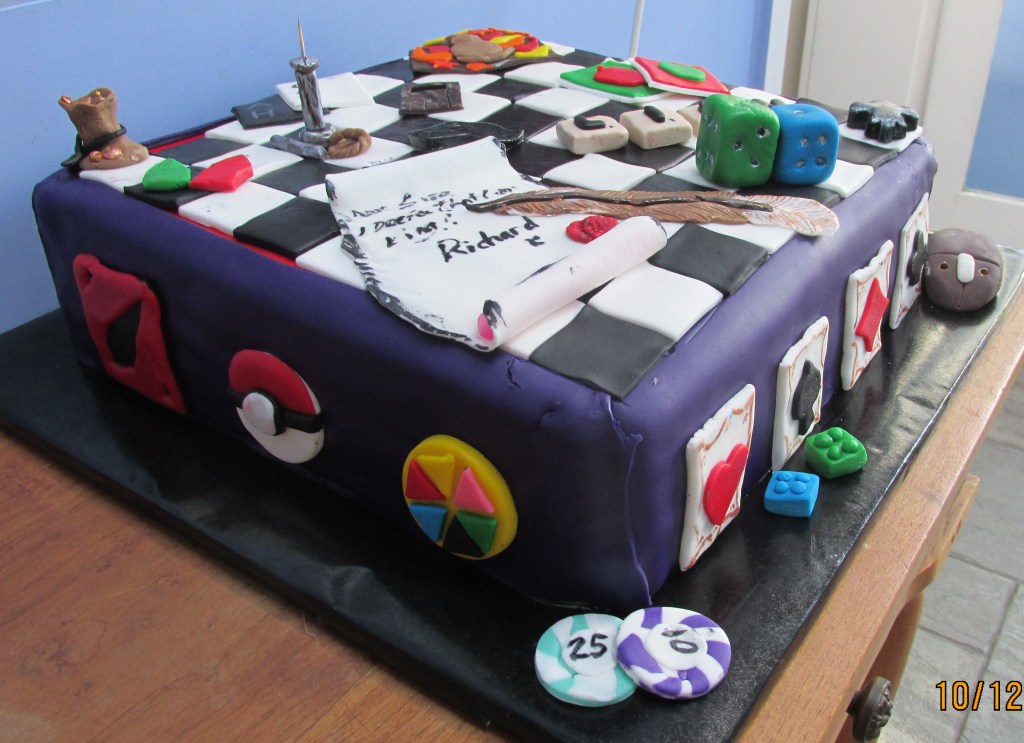 As a cake decorator, his cakes have been very elaborate over the years – the best was his 21st – a 14-inch chessboard, adorned with references to his many gaming hobbies from over the years… Post 21 though, I have decided to just make cake……..