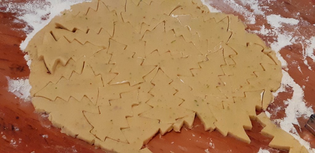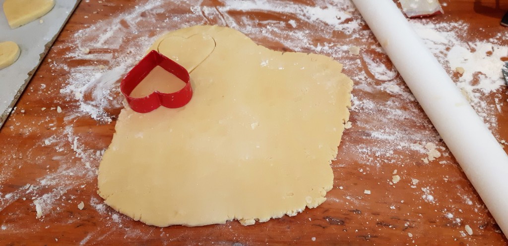 If you want to go down the cookie cutter route, roll the dough to about ¾ cm thick and cut out your shapes.Using a palette knife, carefully place on the baking tray and cook 8-10 mins @180C. Be warned you cannot use really intricate cutters, you’ll drive yourself crazy.