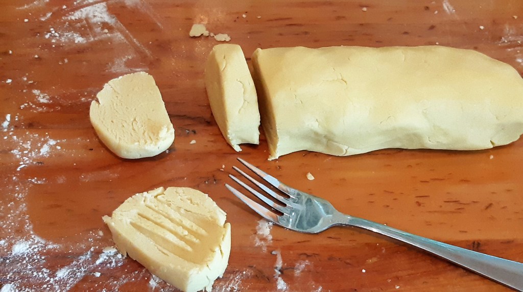To bake, either roll into a cylinder about 4cm round and slice 1 cm slices. Flatten with a fork and bake for 10 mins @ 180C.