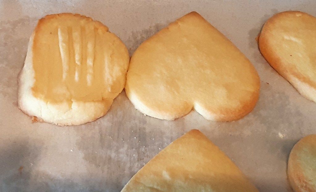 When baking check a couple of minutes before the end – because of the high butter content these shortbread can brown very quickly. You want to catch them as they “tan” around the edges.. But even a bit brown, they are still delicious!