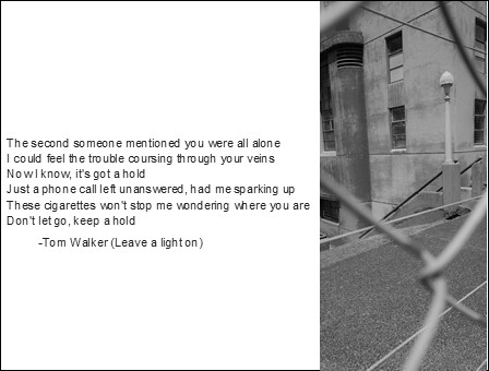 Sit out on the ledge, begged you to come down